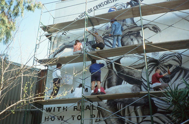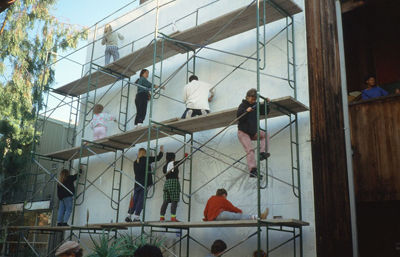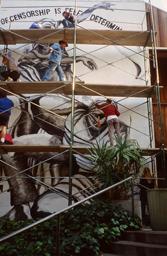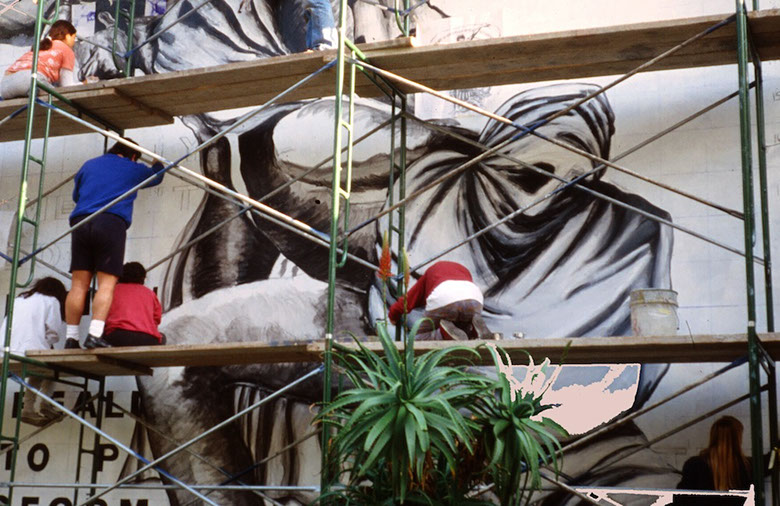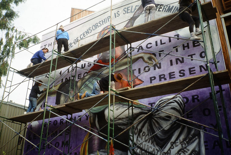 CCAC Campus, Oakland, CA California College of Arts and Crafts Students Directed by Malaquias Montoya Mural Status: No longer exists Photographer: Lezlie Salkowitz-Montoya